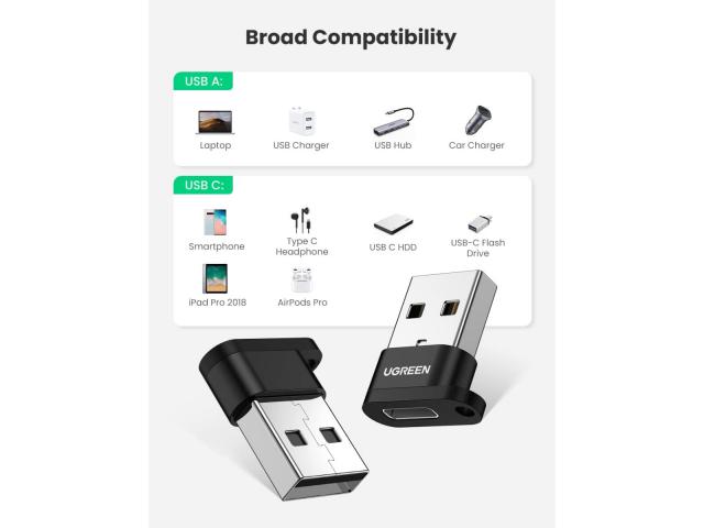 USB A to USB C adapter easily converts USB-A port to USB-C port and supports fast charging, data transfer and audio output, which allows you to use new USB C devices with old devices. Simply host USB A-port devices. With this USB C adapter, you don't need to buy more cables.