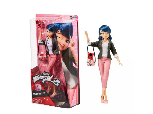 Modna lutka Marinette od 10,5" ima tajni identitet..i ona je šik, pravda i pariški način! Vrhunsko poziranje s 13 točaka artikulacije, dvostruko spojenim laktovima i koljenima Dolazi s Marinettes samtastim ružičastim hlačama, bijelom majicom s printom trešnjinog cvijeta , jakna, cipele koje se mogu skinuti, njezin kwami ??"TIKKI" i super adorbs torbice preko tijela! Sakupite sve Miraculous Heroez!