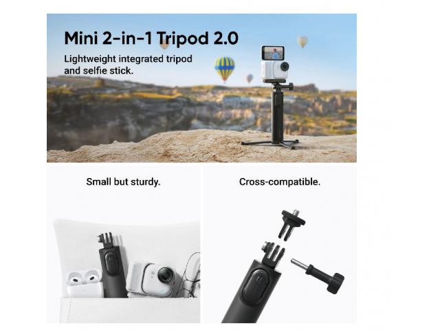 - Creator Bundle uključuje: 1x GO Ultra, 1x Štitnik za objektiv (standardno je ugrađen na objektiv), 1x Sigurnosni kabel za brzo otpuštanje, 1x Magnetna kopča, 1x Magnetni privjesak, 1x Nosač za brzo otpuštanje, 1x Mini 2-u-1 tronožac 2.0, 1x Okretni stalak