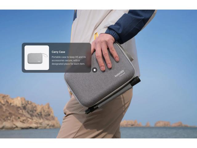 - Essential paket uključuje 1x Insta360 X5, 1x dodatnu bateriju, 1x futrolu za brzo punjenje, 1x nevidljivi selfie štap od 114 cm, 1x standardnu ??zaštitu za objektiv, 1x poklopac za objektiv i 1x torbicu za nošenje.