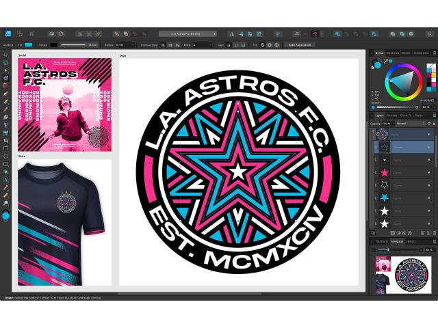 Affinity Designer je nagrađivani softver za vektorsku grafiku koji postavlja novi industrijski standard u svijetu dizajna. Dostupna za Windows, macOS i iPad, super-glatka aplikacija prepuna značajki izbor je tisuća profesionalnih ilustratora, web dizajnera, programera igara i drugih kreativaca koji žele stvoriti visokokvalitetnu konceptualnu umjetnost, ispisne projekte, logotipe, ikone, dizajn korisničkog sučelja, makete i više.