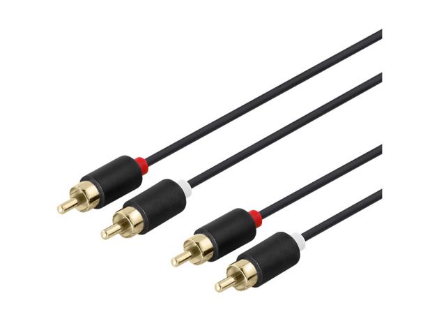 DELTACO audio kabel, 2xRCA, konektori pozlaćeni, 5m, crni