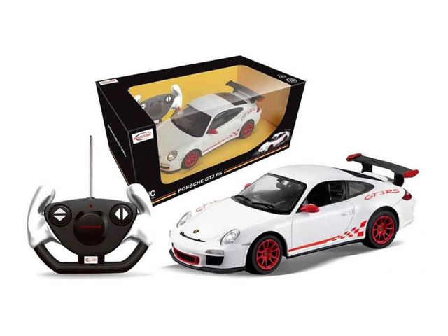 Vrhunsko vozilo kvalitetne izrade otporne na udarce i prave gume na kotačima zbog kojih je držanje na podlozi superiorno u odnosu na druge proizvođače samo su neke od izvrsnih odlika legendarnog Porsche GT3 RS trkaćeg autića na daljinsko upravljanje, licencirane replike originalnog automobila. Vozilo se kreće u svim smjerovima pomoću daljinskog upravljača.
