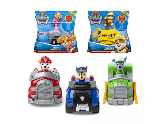 Svako vozilo u ovom asortimanu dolazi s jednim od omiljenih likova Paw Patrola spremnih za akciju spašavanja! Pridruži se Marshallu, Rubbleu, Chaseu, Rockyju, Zumi ili Skye u psećoj avanturi!