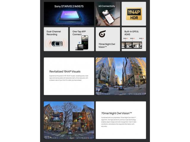 - Izvrsna kvaliteta slike noću (70mai Night Owl Vision)