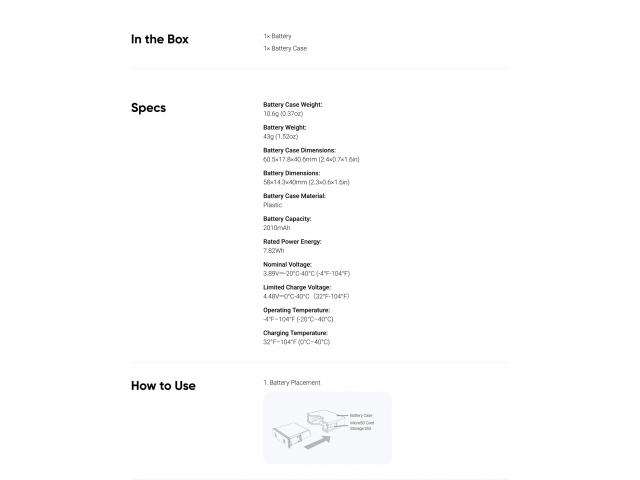 Kapacitet od 2010 mAh daje vam do 88 minuta 8K30fps snimaka - dovoljno da zabilježite svoje avanture od početka do kraja. Uključuje malu, praktičnu kutijicu za bateriju u koju stane čak i memorijska kartica. Dizajniran za rad u uvjetima smrzavanja do -20°C, što ga čini savršenim za zimske avanture.