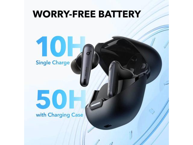 - Iznimno dugo trajanje baterije: Uživajte u neprekidnoj zabavi uz 10 sati reprodukcije i 50 sati trajanja baterije s kućištem, 10-minutnim brzim punjenjem za 4 sata glazbe i bežičnim punjenjem.