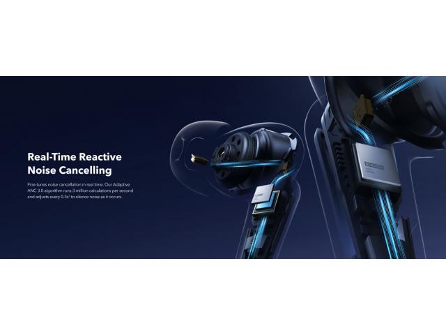 - Prilagodljivo poništavanje buke u stvarnom vremenu: Ove bežične slušalice za poništavanje buke prilagođavaju se vašem promjenjivom okruženju svake 0,3 sekunde, pružajući optimalno, besprijekorno poništavanje buke tijekom dana.
