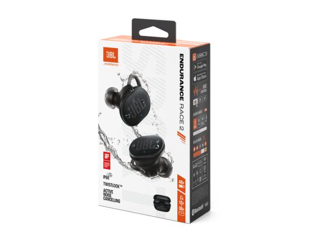 JBL Endurance Race 2 bežične slušalice dizajnirane su za sportaše, s JBL Pure Bass zvukom i IP67 vodootpornošću te otpornošću na prašinu za ekstremne uvjete. S do 30 sati reprodukcije (10 sati u slušalicama + 20 sati u kutiji) i sigurnim pristajanjem zahvaljujući Twistlock dizajnu, idealne su za vježbanje na otvorenom ili u teretani. Upravljanje dodirom i JBL aplikacija omogućavaju prilagodbu zvuka i jednostavnu kontrolu.