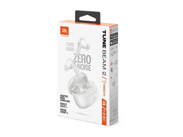 JBL Tune Beam 2 bežične slušalice pružaju JBL Pure Bass zvuk s aktivnim uklanjanjem buke. S do 40 sati reprodukcije (10 sati u slušalicama + 30 sati u kutiji) i IP54 otpornošću na prskanje, idealne su za glazbu, pozive i vježbanje. Prilagodljive postavke dostupne su putem JBL aplikacije, uz jednostavno upravljanje dodirom.