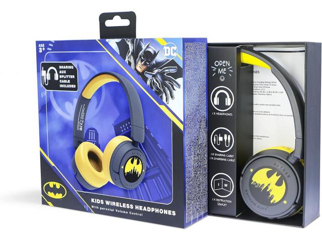 Bežične slušalice Batman prikladne su za djecu od 3 godine i više. Ove bežične dječje slušalice s ugrađenim mikrofonom imaju dvije razine glasnoće od 85 dB i postavku za pojačanje zvuka kada vam je potrebno pojačanje (npr. tijekom putovanja zrakoplovom ili vlakom). Mogu se koristiti sa svim vašim omiljenim uređajima (tableti, pametni telefoni, ručne igre, uređaji za učenje, igraće konzole). Mogu se koristiti i u žičnom načinu rada, pomoću kabela za dijeljenje zvuka s univerzalnim 3,5 mm priključkom (uključen).