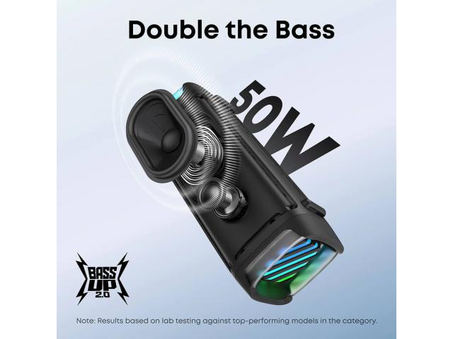- Udvostručite bas uz BassUp 2.0: Uživajte u snažnom zvuku od 50 W s basom dubokim do 56 Hz. BassUp 2.0 i DSP tehnologija pružaju snažne niske i oštre visoke tonove za ozbiljne audio performanse u kompaktnom prijenosnom zvučniku.