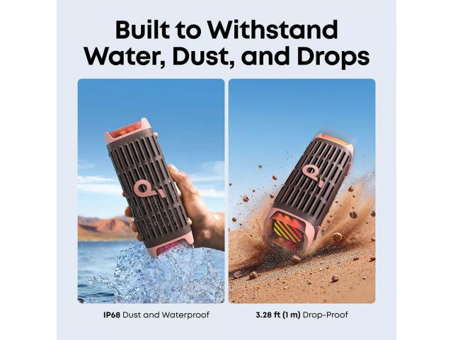 - IP68 ocjena vodootpornosti i otpornosti na prašinu: Izrađen da preživi vremenske uvjete, ovaj Bluetooth zvučnik je potpuno vodootporan i otporan na prašinu kako bi se osiguralo da će raditi kao nov gdje god ga ponesete.