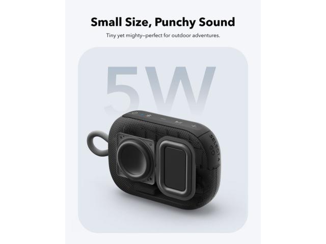 - 5 W, iznenađujuće snažan zvuk : Usprkos svojoj kompaktnoj veličini, ovaj Bluetooth zvučnik pruža snažan zvuk s izlaznom snagom od 5 W, što osigurava jasan i dinamičan zvuk.