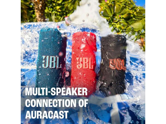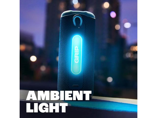 JBL Grip je možda kompaktan, ali njegov profesionalni zvuk je snažan prodoran bas i kristalno čisti visoki tonovi. Bilo da se radi o stvaranju atmosfere za opuštajuće jutarnje istezanje ili o opuštajućim danima na plaži. Ugrađeno ambijentalno svjetlo na stražnjoj ploči prilagođava se trenutku, tako da možete stvoriti raspoloženje za opuštajuće večeri i spontana druženja. Koristite praktičnu tipku za upravljanje na bočnoj ploči za prebacivanje između svjetlosnih tema, tako da je raspoloženje uvijek pravo, bez obzira opuštate li se ili se zabavljate. Jesmo li spomenuli da je super izdržljiv? JBL Grip je napravljen da podnese sve. S vodećom IP68 ocjenom vodootpornosti i otpornosti na prašinu, ide kamo god idemo. Njegov dizajn otporan na pad znači da može preživjeti jak pad na beton - nema problema sa zabavom. Sve to, plus do 14 sati reprodukcije s Playtime Boostom. Kad nam prijatelji dođu, koristimo Auracast™ za stereo uparivanje dvaju Gripova za trenutni surround zvuk. Zašto stati tu? Možemo spojiti onoliko JBL Auracast™ zvučnika koliko imamo za potpuno zvučno iskustvo.