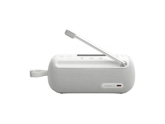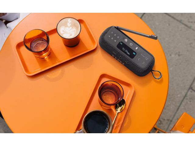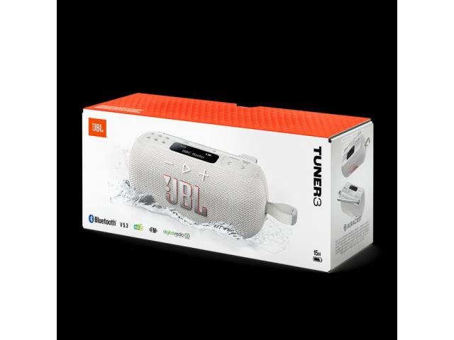 Uključite se u zabavu i uronite u novo, zanimljivo radijsko iskustvo. Naš snažni, prijenosni JBL Tuner 3 radio drži nas vezanima za naše omiljene DAB/DAB+/FM radio stanice i Bluetooth streaming, pružajući snažan, kristalno čist JBL Pro zvuk u kuhinji, uz bazen, na kampu ili gdje god nas raspoloženje odvede. Znamo da će vam podići slušanje na višu razinu. Pripremite se pojačati glasnoću. Pojačali smo snagu zvučnika, tako da je praktični JBL Tuner 3 dovoljno glasan da ispuni svaki prostor besprijekornim, realističnim zvukom. To je naš najsnažniji radio do sada. Postavite svojih šest omiljenih stanica kako bi vam uvijek bile na dohvat ruke. Također volimo istraživati zračni val kako bismo vidjeli kakva se iznenađenja pojavljuju na velikom, jasnom LCD zaslonu. U svakom slučaju, s Playtime Boostom dobivate do 15 sati slušanja prije nego što vam zatreba punjenje. Nosite ga bilo gdje, u zatvorenom ili vani, koristeći čvrstu petlju. Bilo da slušate uz umivaonik u kupaonici ili na bijeloj pješčanoj plaži, vodootporan i otporan na prašinu dizajn može podnijeti gotovo sve. Pronađite svoju novu stanicu s JBL Tunerom 3.