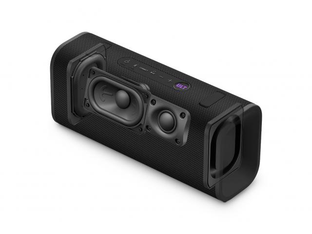 S IP67 ocjenom, zvučnik je vodootporan, otporan na prašinu, slanu vodu i udarce (MIL-STD 810H, test pada s 1,22 m), što ga čini idealnim za plažu, planinarenje ili zabave na otvorenom. Baterija traje do 24 sati, s brzim punjenjem (10 minuta za 120 minuta reprodukcije) putem USB Type-C priključka, koji također može puniti pametni telefon. Bluetooth 5.2 osigurava stabilnu vezu na dometu do 10 m, uz podršku za višetočkovnu povezivost i funkcije Stereo Pair (za stereo zvuk s dva zvučnika) i Party Connect (za sinkronizaciju do 100 kompatibilnih zvučnika).