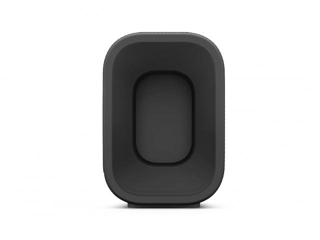Ugrađeni mikrofon s tehnologijom poništavanja jeke omogućuje kristalno čiste hands-free pozive. Kompaktan dizajn (256 x 113 x 79 mm, 1,2 kg) s odvojivom trakom za nošenje na ramenu i mogućnošću horizontalnog ili vertikalnog postavljanja čini ga izuzetno prenosivim. Aplikacija Sony | Sound Connect omogućuje praćenje povijesti slušanja i prilagodbu postavki, dok energetska učinkovitost (0,3W u stanju pripravnosti, 0,5W u mrežnom stanju) doprinosi ekološkom pristupu.