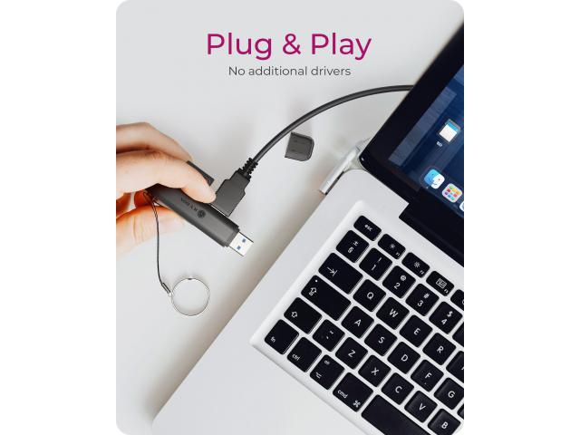 IB-CR203-CU3 ima ugrađeni USB Type-A utor, što dodaje dodatnu praktičnost za povezivanje vanjskih uređaja ili pribora. Koristite ga za spajanje flash pogona, tipkovnice ili miša dok upravljate svojim memorijskim karticama. Ova dodatna funkcionalnost pretvara čitač kartica u malo, ali praktično središte, idealno za maksimiziranje ograničene dostupnosti priključaka na prijenosnim računalima ili tabletima.