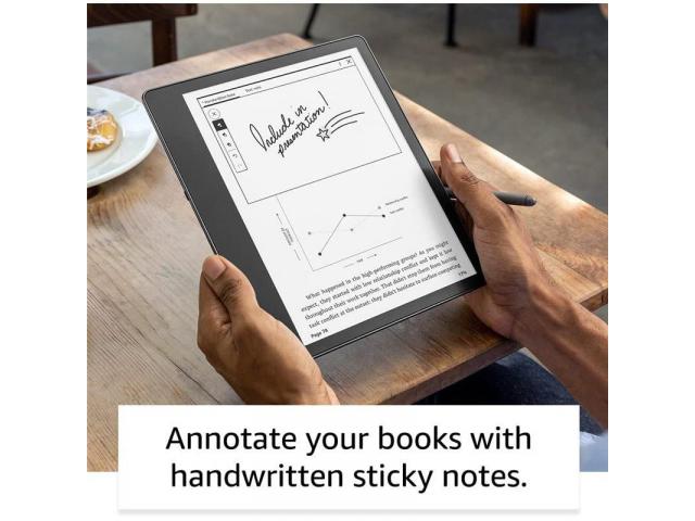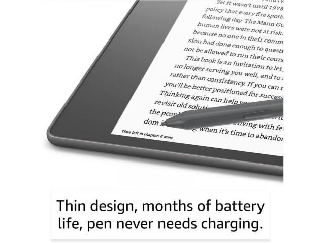 S 10,2-inčnim Paperwhite zaslonom bez odsjaja i 300 ppi, Kindle Scribe je savršen za čitanje i pisanje, čak i na izravnoj sunčevoj svjetlosti. Veliki zaslon daje vam prostor za bilješke i vođenje dnevnika te olakšava podešavanje veličine fonta i širine margina za veću udobnost čitanja. Pisanje na Kindle Scribeu osjeća se kao pisanje po papiru. Od prirodnog držanja olovke u ruci do zvuka koji čujete dok pišete, površina Kindle Scribea izrađena je za najbolje moguće iskustvo čitanja i pisanja.