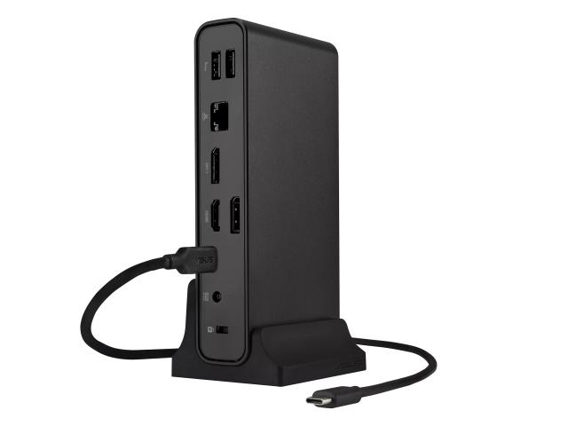 ASUS Triple Display USB-C Dock Duo DC301 Duo ima mnoštvo I/O priključaka: tri vanjska zaslona mogu se spojiti putem HDMI® i 2 DisplayPort™, dva USB 3.2 Gen 1 Type-A priključka podržavaju tipkovnicu i miš, a tu su i USB-C® priključak, USB Type-A priključak, RJ45 mrežni priključak, audio priključak za slušalice i čitač SD kartica za prijenos podataka. To je ukupno 12 funkcija.