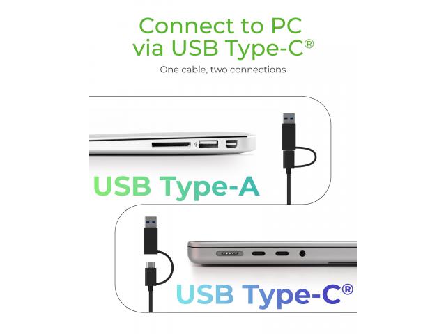 Opremljen kombiniranim kabelom USB Type-C na Type-C/Type A, ovaj adapter nudi dvostruke mogućnosti povezivanja. Ovo povećava svestranost za povezivanje s različitim sučeljima uređaja.