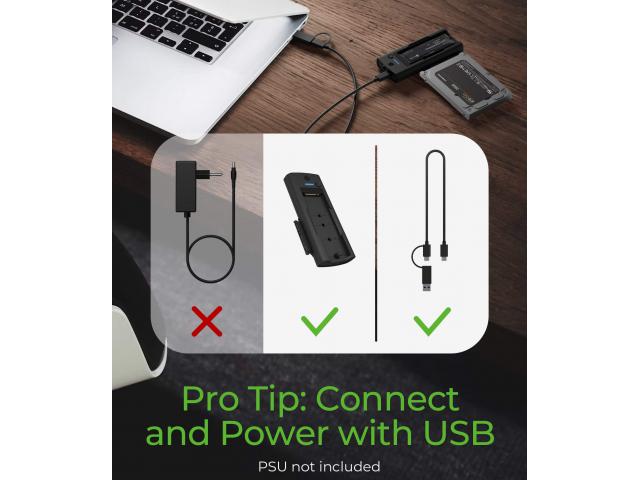 Povežite se i napajajte putem USB-a - Napajajte svoje M.2 i 2,5-inčne pogone pomoću USB 3.0 ili Type-C priključaka, eliminirajući potrebu za jedinicom napajanja (PSU). Imajte na umu da će samo 3,5-inčni pogoni zahtijevati napajanje za rad.