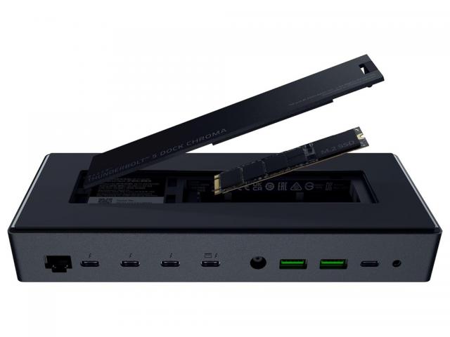Integrirani M.2 PCIe Gen4 SSD utor omogućuje izravnu pohranu do 8 TB podataka, bez potrebe za dodatnim vanjskim pogonima. Podržava ultra-brze prijenose do 120 Gb/s (80 Gb/s za podatke i 40 Gb/s za video), idealno za gaming, kreativni rad i multitasking.