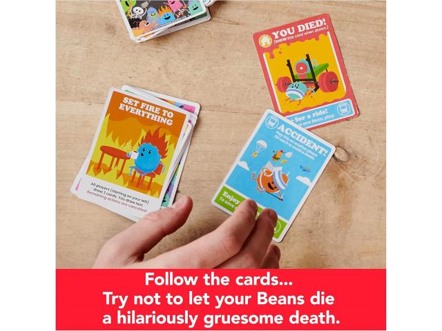 Dumb Ways to Die odaje vibracije "radosnog idiota" dok prati ekipu "graha" koji pronalaze najapsurdnije i najgluplje načine da umru. Nasilje je boje slatkiša i nikada nije stvarno zastrašujuće. Temeljena na nevino zvučećoj pjesmi o sigurnosti u prometu koja je osvojila internet 2012. godine, igra Dumb Ways to Die stavlja živote Graha u vaše ruke i u ruke sudbine kako biste vidjeli tko će biti posljednji preživjeli Grah. Smisao igre je ne dopustiti da vam grah ugine. Svaki igrač započinje s 3 karte animiranog graha smrti. Posljednja osoba koja ima jedan ili više živih graha je pobjednik. Ali nemojte biti previše tužni ako izgubite, grah možete čudesno vratiti u život tako da ga okrenete i započnete novu igru! Na svom potezu bacit ćete kockicu kako biste saznali koliko akcija možete izvesti. Postoje 2 vrste karata koje možete igrati: NESREĆA! Karte i sve ostalo. Igrate karte nesreće na druge igrače kako biste doveli njihov grah u opasnost! Kao odgovor, igrači mogu koristiti svoje karte kako bi spasili grah od potencijalne smrti.