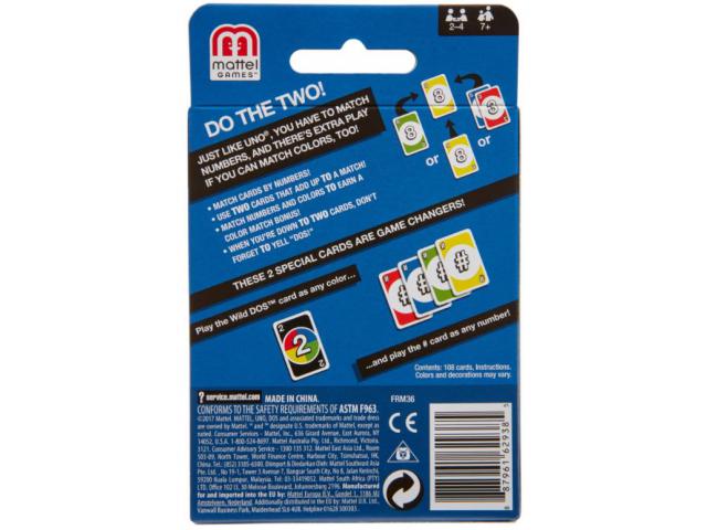 U ovoj zabavnoj igri, dva je važniji od jedan, a podudaranje po broju je glavno. Kao i kod UNO karata, i u igri DOS cilj je biti prvi koji će se riješiti karata. Na početku igre okreću se dvije karte i prilikom svakog kruga, igrač može igrati na obje okrenute karte i to s jednom ili dvije karte. Karte koje se stavljaju na okrenute karte moraju odgovarati brojem, a ako odgovaraju i bojom to je dodatni bonus. Ako igraču ostanu dvije karte u ruci, on u sljedećem krugu može spustiti obje karte, ali ne smije zaboraviti viknuti DOS!
