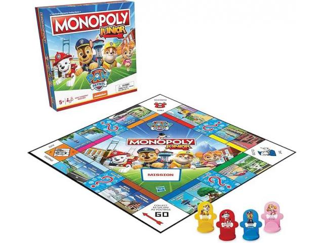 Otkrijte svoje omiljene lokacije Paw Patrol, od plaže Adventure Bay i parka do sjedišta Paw Patrol. Istražite svako polje na ploči i dovršite posebne misije. Možete li pomoći gradonačelnici Chickaletti da je pronađe? Odaberite jednog od četiri lika Paw Patrol - Chasea, Marshalla, Skyea ili Rubblea - i krenite u uzbudljivu avanturu s ovim posebnim izdanjem Monopoly Juniora iz Paw Patrol.