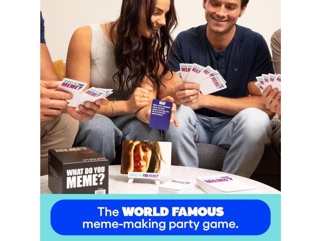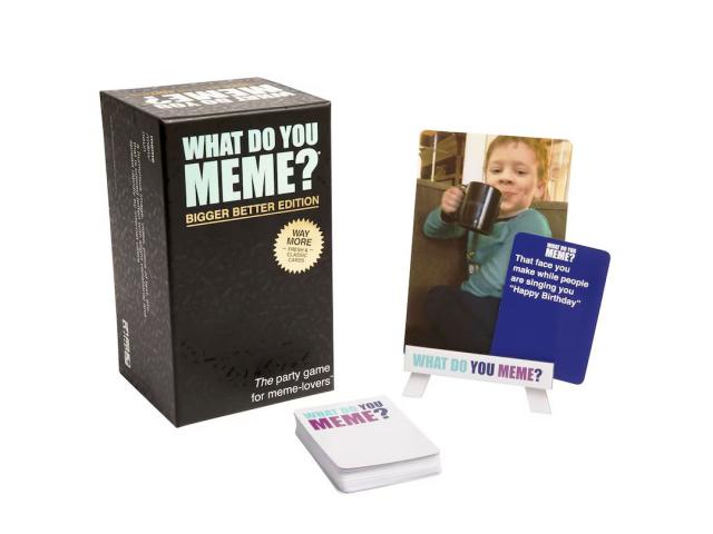 What Do You Meme? je zabavna društvena igra koja je slomila internet, a sada je imate priliku zaigrati u nikad većem izdanju. Originalnoj igri dodan je novi sadržaj i luksuznije pakiranje pa ćete unutar kutije pronaći ukupno 450 kartica s naslovima, 75 kartica s fotografijama, upute za igru koje nude nove ideje i višestruke načine igre. Dizajn kutije, kao i njen originalni sadržaj, čine ovu društvenu igru idealnim poklonom za drage vam ljude koji razumiju i poznaju modernu pop kulturu. Zbog osjetljivog sadržaja na pojedinim fotografijama ova društvena igra namijenjena je osobama starijim od 18 godina.
