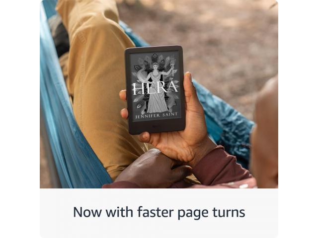 Najlakši, najkompaktniji Kindle, sada s još boljim značajkama zaslona i bržim okretanjem stranica. Prednje svjetlo je 25% svjetlije na najvišoj postavci, što ga čini svijetlim kao Kindle Paperwhite. S podesivim načinom prednjeg osvjetljenja i tame, čitanje na 6-inčnom zaslonu bez odsjaja prekrasno je udobno u bilo koje doba dana. Čitanje je uvijek užitak uz najlakši i najkompaktniji Kindle. Podesite prednje svjetlo zaslona ili upotrijebite tamni način za invertiranje teksta u boji.