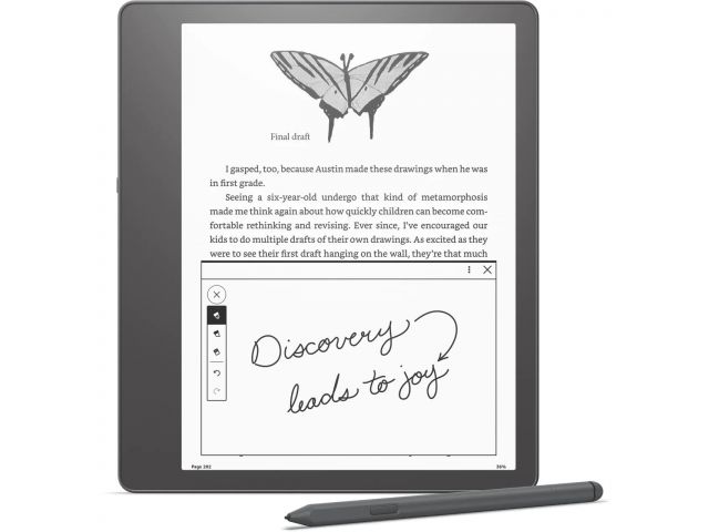 S Paperwhite zaslonom od 10,2 inča i 300 ppi bez odsjaja, Kindle Scribe je savršen za čitanje i pisanje, čak i na izravnoj sunčevoj svjetlosti. Veliki zaslon daje vam prostor za bilježenje i vođenje dnevnika te olakšava podešavanje veličine fonta i širine margine za bolju udobnost čitanja. Pisanje na Kindle Scribeu čini se kao pisanje na papiru. Od prirodnog držanja olovke u vašoj ruci, do zvuka koji čujete dok pišete, površina Kindle Scribea izrađena je za najbolje moguće iskustvo čitanja i pisanja.