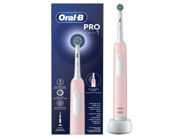 Isprobajte Oral-B Pro Series 1, od marke zubnih četkica koja je 1. izbor stomatologa diljem svijeta. Električna zubna četkica Series 1 pomaže vam da zube perete 2 minute, koliko preporučuju i stomatolozi, i to uz pomoć profesionalnog mjerača vremena koji vam svakih 30 sekundi javlja da je vrijeme za prijelaz na sljedeći kvadrant. Dok vi samo pomičete četkicu po ustima, jedinstvena okrugla glava četkice Oral-B radi sve ostalo. Uklanja do 100% više zubnih naslaga za zdravije desni, u usporedbi sa standardnom klasičnom zubnom četkicom, te istodobno uklanjanjem površinskih mrlja čini vaš osmijeh bjeljim već od prvog dana. Profesionalni mjerač vremena ugrađen u Oral-B Pro Series 1 čini ovu zubnu četkicu izvrsnim rješenjem za svakoga tko želi početi upotrebljavati električnu zubnu četkicu.
