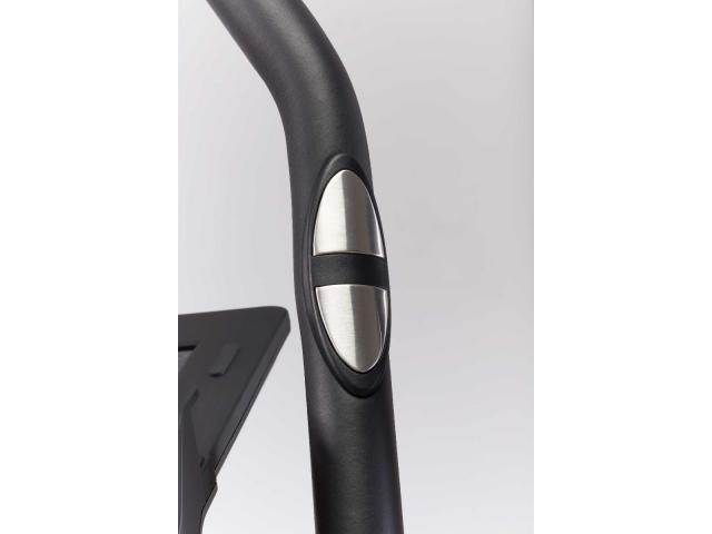 Eliptični trenažer ima integrirani ručni senzor otkucaja srca te dolazi s držačem za tablet ili telefon.