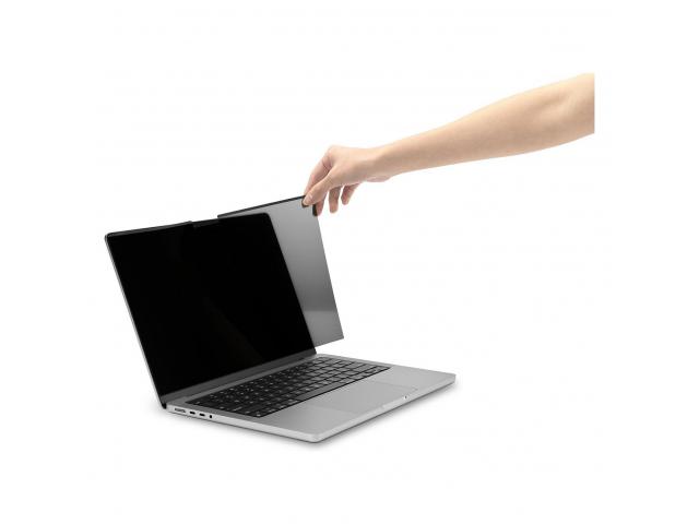 Filter za privatnost se neprimjetno pričvršćuje na okvir MacBook Pro-a pomoću magneta i može se lako odvojiti.