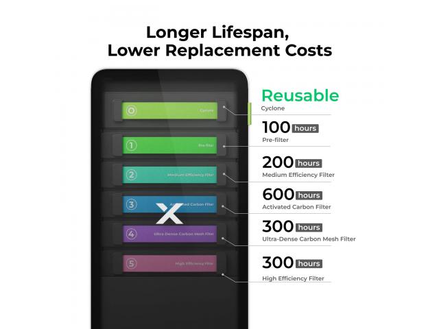 - Svaki filter ima drugačiji vijek trajanja, nudeći od 100 do 600 sati korištenja.