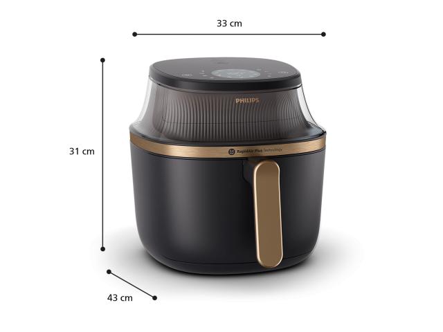- Tehnologija RapidAir Plus – hrskavo izvana, sočno iznutra, do 40 % viška masnoće otječe u tavu