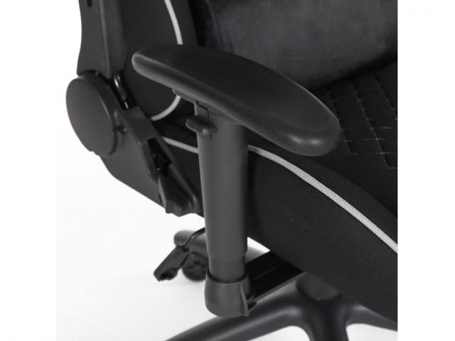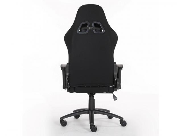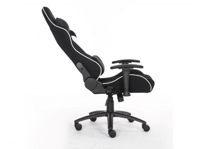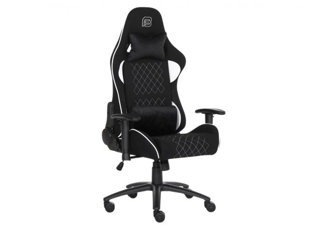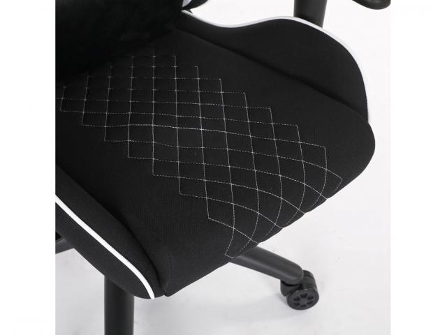 Gaming stolica s potpornim jastučićima; Nasloni za ruke: 2D; Materijal pokrova stolice: Tkanina; Materijal unutrašnjosti: Hladno prešana pjena; Dimenzije (cm): 70 x 50 x 126 - 136; Tip mehanizma: Leptir; Tip postolja: 350mm metalna baza; Zračni mehanizam podizanja: Klasa 4 / 100mm; Veličina i materijal kotačića: 60mm PU; Jastuk za glavu i leđa od tkanine; Nosivost: 150kg; Širina naslona za ramena: 55cm; Visina naslona: 83cm; Veličina sjedala: 55.5cm Š x 53cm D; Visina sjedala: 48-58cm; Zaključavanje kuta nagiba 15°; Zaključavanje nagiba; Podešavanje nagiba 150°; Boja pokrova stolice: Crno/Bijela; Materijal okvira: Željezo; Boja okvira: Crna; Potrebna montaža
