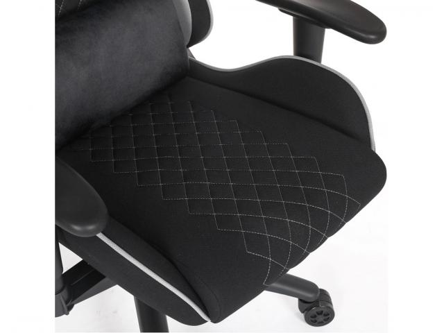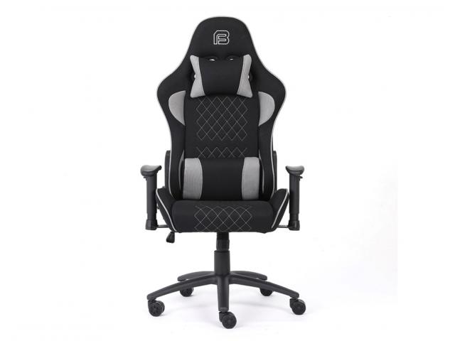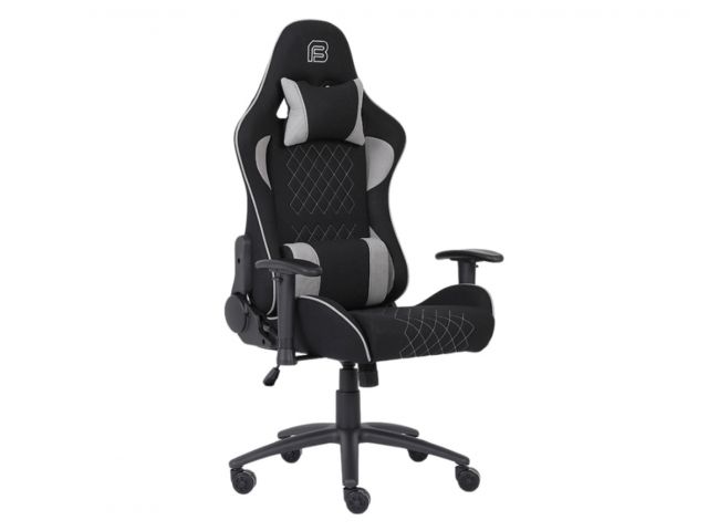 Gaming stolica s potpornim jastučićima; Nasloni za ruke: 2D; Materijal pokrova stolice: Tkanina; Materijal unutrašnjosti: Hladno prešana pjena; Dimenzije (cm): 70 x 50 x 126 - 136; Tip mehanizma: Leptir; Tip postolja: 350mm metalna baza; Zračni mehanizam podizanja: Klasa 4 / 100mm; Veličina i materijal kotačića: 60mm PU; Jastuk za glavu i leđa od tkanine; Nosivost: 150kg; Širina naslona za ramena: 55cm; Visina naslona: 83cm; Veličina sjedala: 55.5cm Š x 53cm D; Visina sjedala: 48-58cm; Zaključavanje kuta nagiba 15°; Zaključavanje nagiba; Podešavanje nagiba 150°; Boja pokrova stolice: Crno/Siva; Materijal okvira: Željezo; Boja okvira: Crna; Potrebna montaža