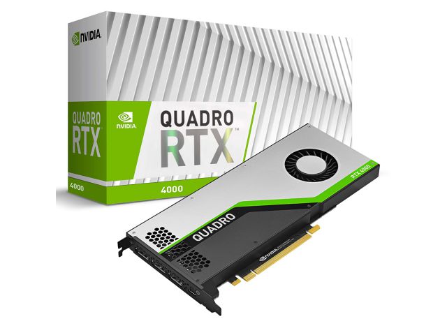 NVIDIA Quadro RTX 4000 sadrži 36 RT jezgri, 288 Tensor jezgri i 8 GB GDDR6 memorije. Grafička kartica je opremljena sa tri DisplayPort 1.4 konektora, HDR podrškom i sadrži najnoviji VirtualLink konektor (koji također može pokretati DisplayPort putem priloženog USB Type-C na DP adapter).