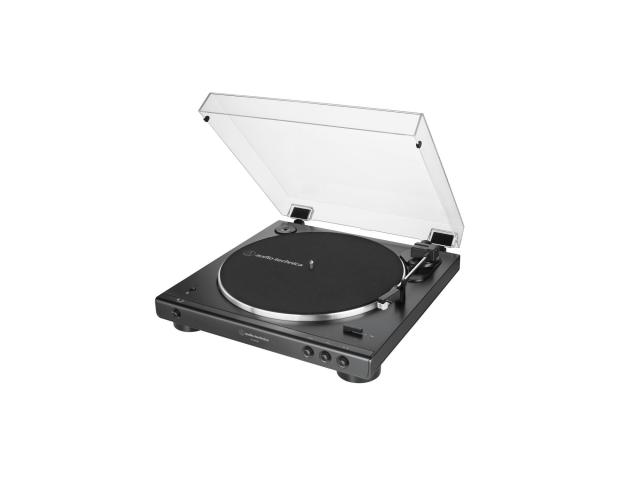 Audio-Technica AT-LP60XBTBK je visokokvalitetni gramofon koji klasičnu žičanu vezu nadopunjuje bežičnom, i to uz pomoć Bluetooth 5 tehnologije i podrške za aptX kodek. Gramofon omogućuje potpuno automatsku reprodukciju pri brzinama od 33-1/3 i 45 RPM, ima ugrađeno fono pretpojačalo i opremljen je integriranom glavom za snimanje s dva pokretna magneta. AT-LP60XBT pokreće motor preko remenskog pogona i omogućuje brzine od 33-1/3 ili 45 RPM. Reprodukcija je potpuno automatska, jer se igla automatski postavlja u pravilan položaj kada se pritisne tipka, a na kraju reprodukcije se diže. Na prednjoj strani nalaze se tipke za start/stop i dizanje/spuštanje ručke. Gramofon se može pohvaliti visokokvalitetnom Bluetooth 5 bežičnom vezom koja vam omogućuje jednostavno slušanje gramofona na Bluetooth zvučniku u susjednoj sobi. Zahvaljujući CSR krugu, gramofon se također može spojiti na uređaje koji podržavaju visokokvalitetni kodek aptX. Naravno, AT-LP60XBT se može spojiti i na klasičan način – žicom. Ima ugrađeno fono pretpojačalo za gramofonski ili linijski izlazni signal, tako da se može jednostavno spojiti na zvučnike, kućno kino itd.