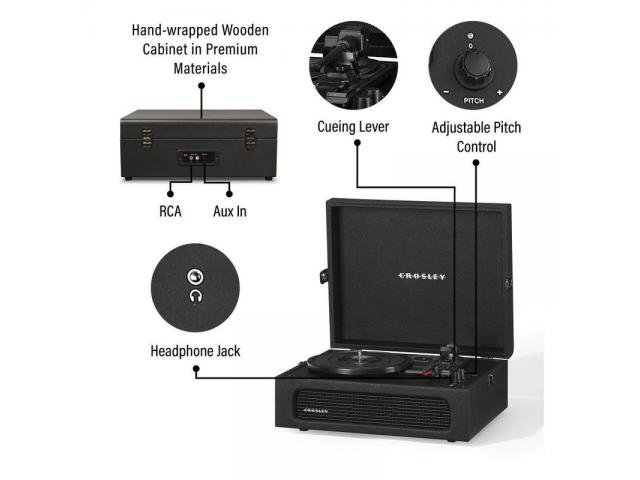 Postavljanje je jednostavno i omogućit će vam da uživate u svojoj vinilu za nekoliko minuta. Ponesite svoju glazbu bilo gdje zahvaljujući prijenosnom dizajnu kofera. Inspirirani 100 godina Crosley inovacija spajaju vintage izgled s modernom tehnologijom. Crosley Radio proizvodi s ponosom su dizajnirani u SAD-u.