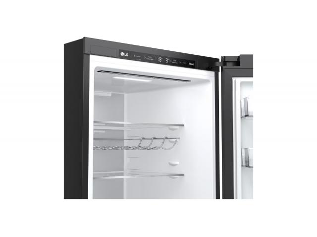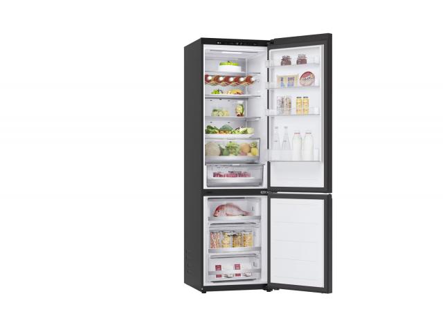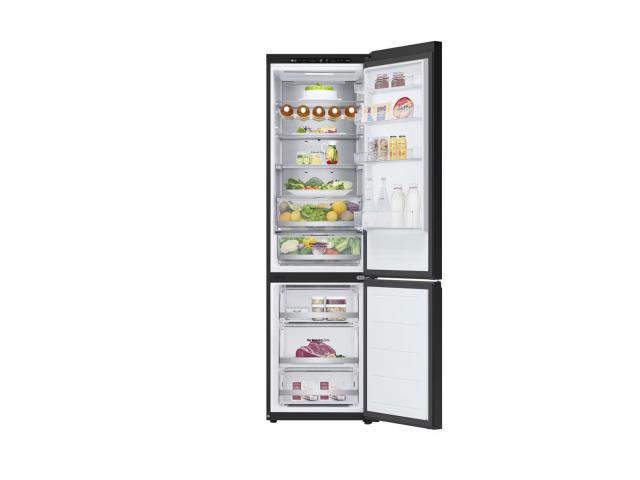 Hladnjak se ističe crnom staklenom bojom vratiju i kaljenim staklom polica, pružajući moderan i luksuzan izgled koji se savršeno uklapa u vašu kuhinju.