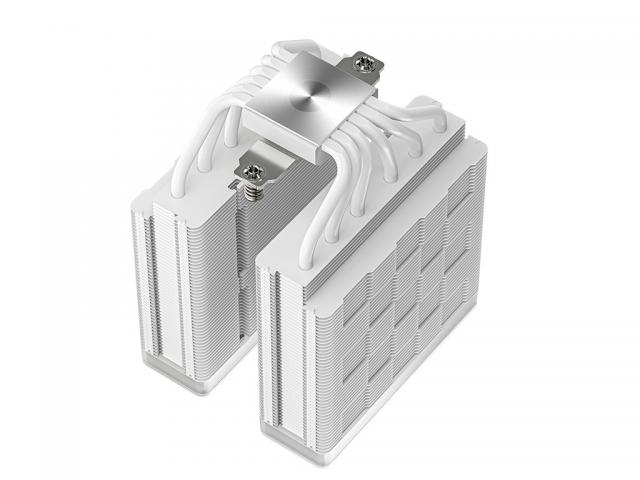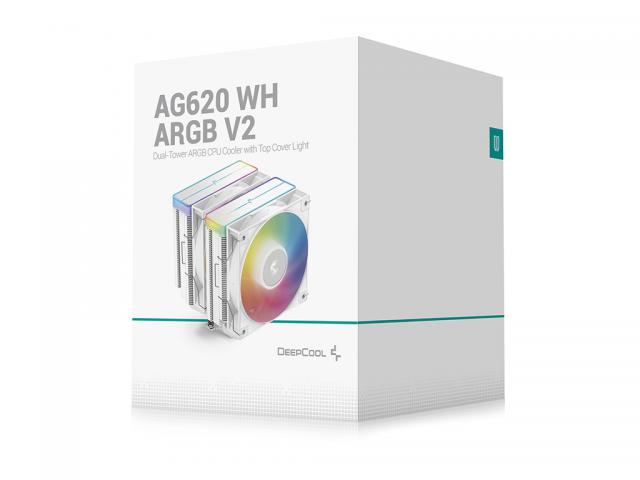 The DeepCool AG620 WH ARGB V2 is an all-white dual-tower CPU cooler focused on high performance efficiency boasting six heat pipes packed in the dense heat sink tower for optimal heat dissipation and paired with two fine-tuned 120mm ARGB PWM fans for powerful cooling.