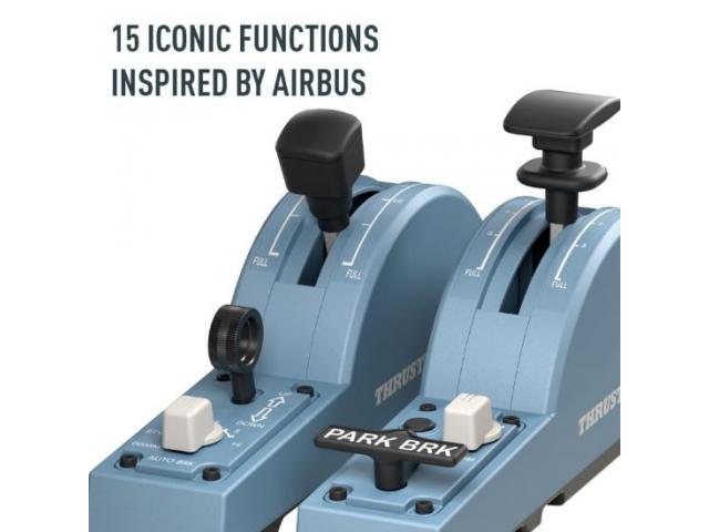 Thrustmaster TCA Quadrant Add-on Airbus Edition nadopunjuje vaš Airbus gas. Dva modula, koji se mogu ugraditi na lijevu i desnu stranu Thrustmaster Airbusa (nisu uključeni), omogućuju kontrolu nad postavkama kočnice brzine i amortizera. I ručica brzinske kočnice i amortizer imaju realne položaje kao što biste očekivali s Airbusom A320. Dodatak također uključuje ručicu mjenjača za upravljanje šasijom, parkirnu kočnicu i gumb za automatsku kočnicu. Kao rezultat toga, ovi moduli Thrustmaster TCA Quadrant Addon Airbus Edition savršen su dodatak vašem Thrustmaster TCA Airbus gasu, čineći virtualno letenje na Airbusu još realističnijim. Kao i Throttle, ovaj dodatak koristi magnetne senzore Hall Effect patentiranog od strane Thrustmastera. Ovi senzori se ne troše i uz to uvijek ostaju iste točnosti. TCA Quadrant Add-On Airbus Edition pruža iznimno realistično i dubinsko iskustvo igranja sa svojih 15 značajki, uključujući realistične tipke i brave posebno dizajnirane za nevjerojatnu kontrolu nad sekvencama slijetanja i slijetanja. Za optimalnu kontrolu različitih manevara koji zahtijevaju preciznu količinu podizanja, uključujući i tijekom faza slijetanja i slijetanja, možete koristiti ručicu kočnice brzine kako biste iznimno precizno poboljšali kontrolu otpora vašeg zrakoplova i tako smanjili brzinu leta. Za povećanje koeficijenta uzgona pri malim brzinama, upravljanje zakrilcima je iznimno važno kako bi se izbjegla gužva u zrakoplovu. Stajni trap zrakoplova je klasičan, legendarni i nezamjenjiv alat za pravilnu kontrolu postupaka polijetanja, kao i za približavanje slijetanja. Ova intuitivna kontrola pomaže vam uštedjeti dragocjeno vrijeme i omogućuje vam da se usredotočite na druge zadatke koje je potrebno izvršiti na vašem popisu za provjeru. Parkirne kočnice koriste komercijalni zrakoplovi kada članovi zemaljske posade ne mogu postaviti podloške. Tijekom oluje ili kada zemaljska posada nije dopuštena na rampi zračne luke, parkirna kočnica ugrađena u TCA Quadrant Add-On Airbus Edition olakšava vam brigu o zaustavljanju i manevrima parkiranja.