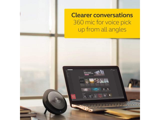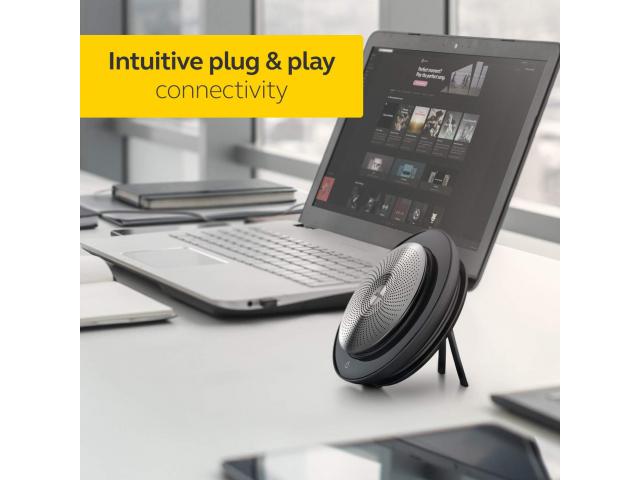 Jabra Speak 710 bežični Bluetooth prijenosni zvučnik ima impresivan zvuk za pozive i glazbu, s višesmjernim mikrofonom i HD glasom; Omogućuje pokrivenost u sobi za do 6 osoba, čineći vaš sastanak učinkovitijim. Podignite audio konferencije na potpuno novu razinu i pretvorite svaku sobu u konferencijsku sobu s ovim laganim, bežičnim Jabra zvučnikom; Koristite ovaj Jabra 710 zvučnik kod kuće, u uredu ili na putovanju. ostavljanje i korištenje ovog Bluetooth konferencijskog zvučnika s mikrofonom je jednostavno, zahvaljujući intuitivnom plug and play povezivanju. Povežite se u nekoliko sekundi s prijenosnim računalom, pametnim telefonom ili tabletom putem USB-a ili Bluetootha. Uz zaštitnu putnu torbicu za korištenje dok ste u pokretu i lagani, kompaktni dizajn, ovaj USB spikerfon možete ponijeti kamo god bili. Uključite zvučnik u svoj mobilni telefon, prijenosno računalo ili bilo koji uređaj koji imate; Ovaj Jabra konferencijski zvučnik također radi s mnogim platformama uključujući GoTo Meeting, Google, Skype for Business i mnoge druge.