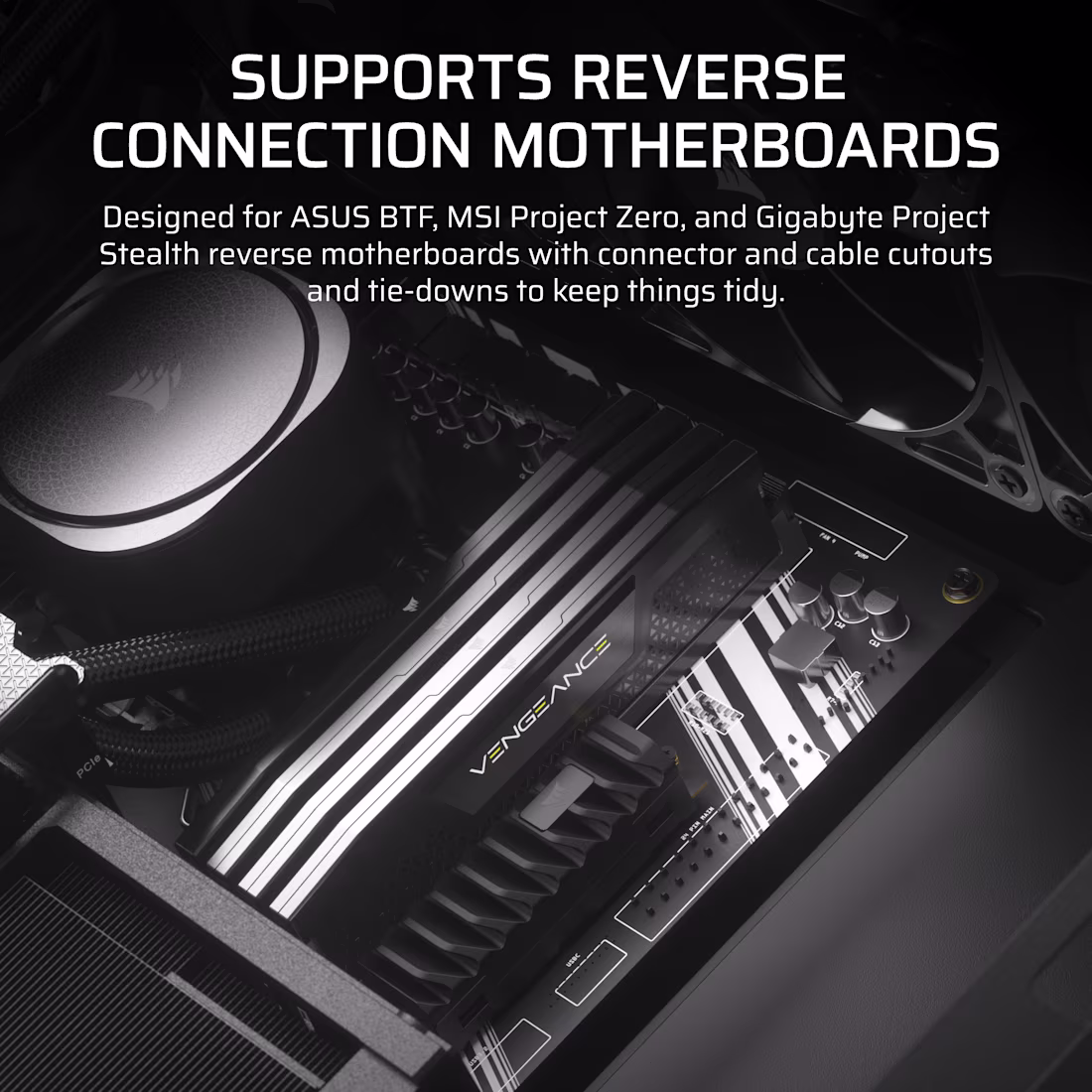 Potpuno kompatibilno s matičnim pločama s obrnutim konektorom tvrtki Asus, MSI i Gigabyte, što omogućuje nesmetan protok zraka i super čistu konstrukciju.