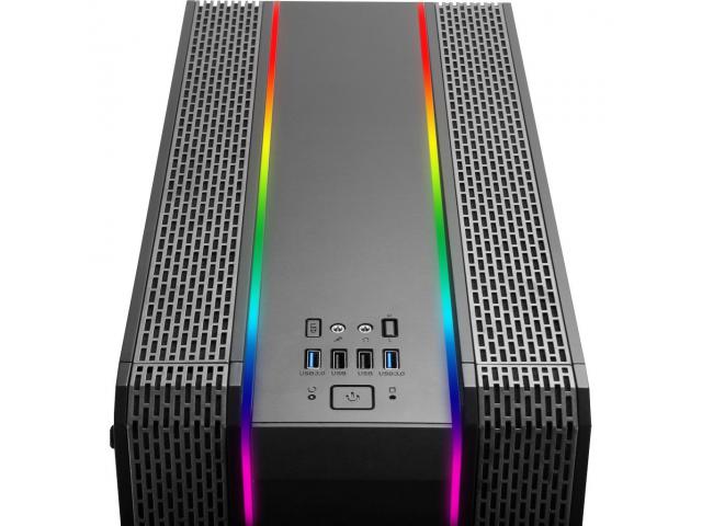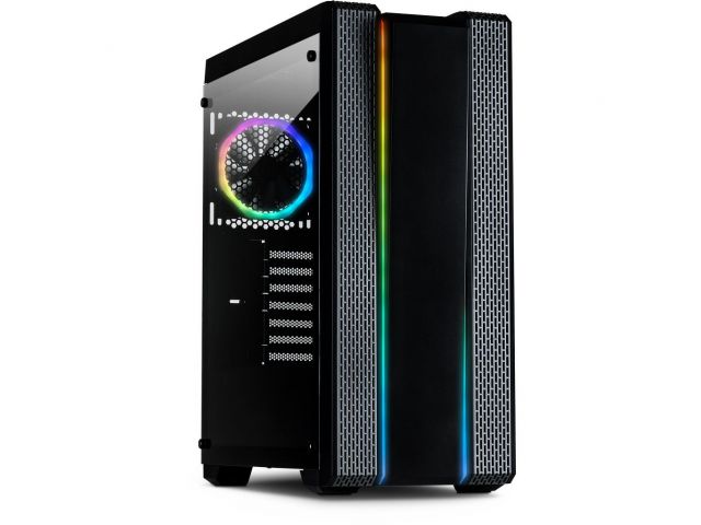 Gaming Midi Tower, ATX, 2x USB3.0, 2x USB2.0, audio, PSU optional, Tempered glass side panel, 2x RGB LED strips in the front, RGB control board, 120mm RGB fan, Dust filters, Black